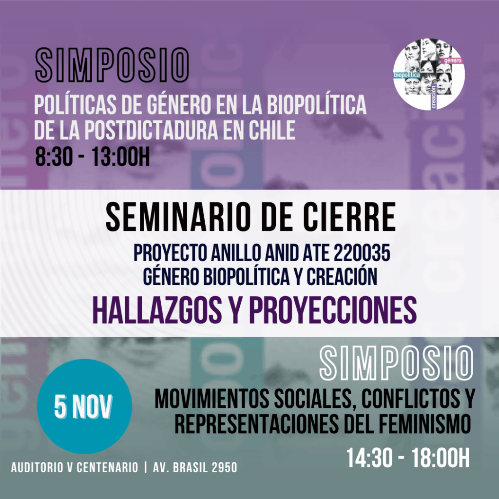 5 de noviembre: Seminario de Cierre del Proyecto Anillo ANID ATE220035. Género, Biopolítica y Creación.